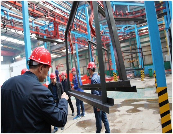 大漢股份噴粉流水線工藝進(jìn)行了參觀。噴粉車間,采用新式環(huán)保設(shè)備更加大了對(duì)原料的利用率。