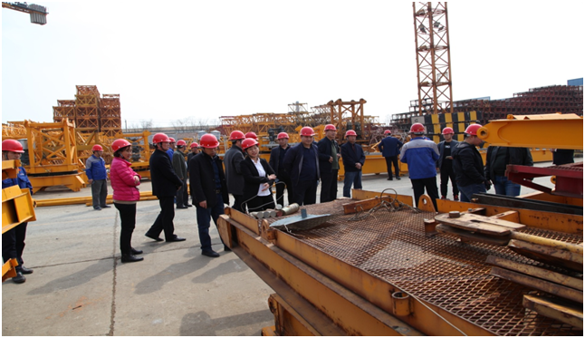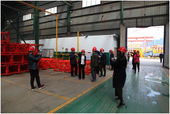 技術(shù)人員陪同質(zhì)安中心主要領(lǐng)導(dǎo)和各單位負(fù)責(zé)人參觀了大漢股份的塔機(jī)維修車間。