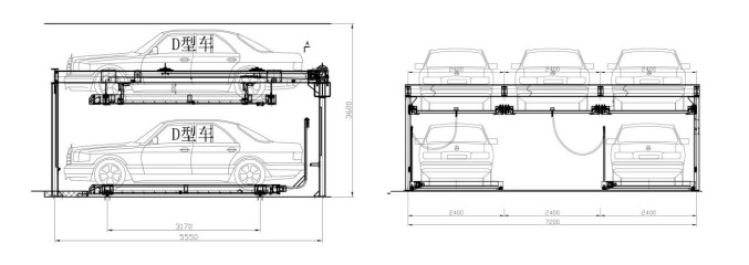 兩層升降橫移類產(chǎn)品由于其結(jié)構(gòu)簡(jiǎn)單、合理、安全,操作簡(jiǎn)便,易于維護(hù);產(chǎn)品布局靈活、組合方便,對(duì)場(chǎng)地適應(yīng)性好,且造價(jià)不高。充分利用空間,數(shù)倍提高停車數(shù)量;根據(jù)客戶場(chǎng)地規(guī)劃,設(shè)計(jì)為兩層,設(shè)備凈高大于3600mm,存取車操作簡(jiǎn)便,可根據(jù)客戶管理需要,采取按鈕式、刷卡式、觸摸屏式多種存取方式。